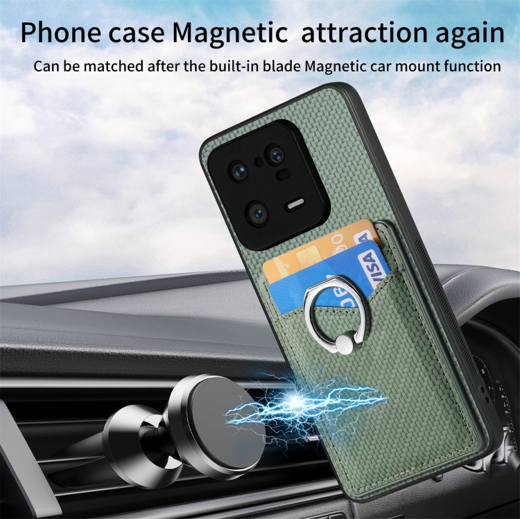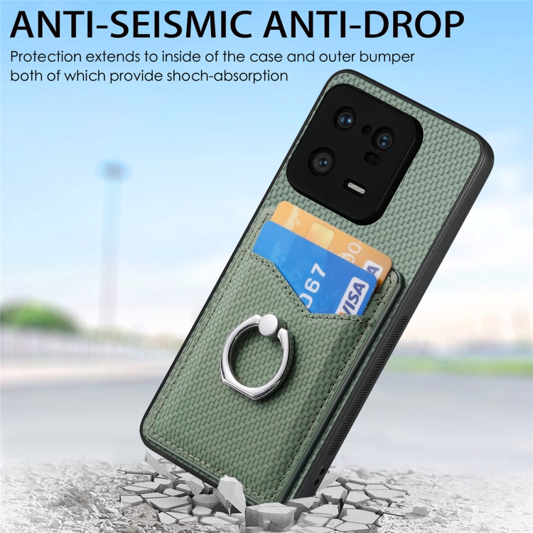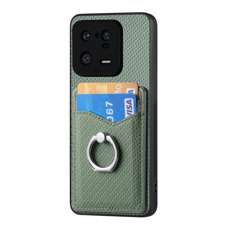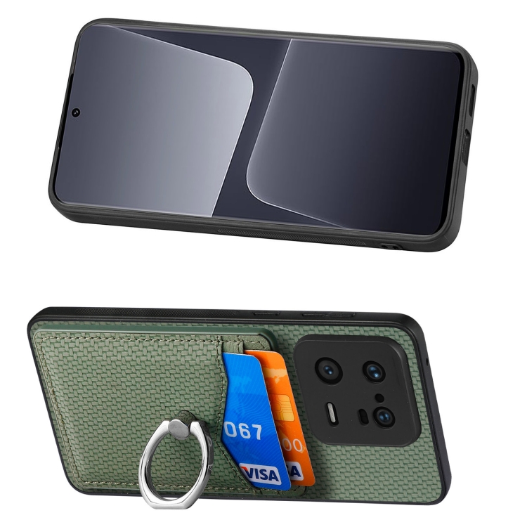 Para Xiaomi 13 Pro Carbon Fiber Card Wallet Ring Holder Phone Case (Verde)