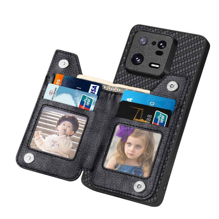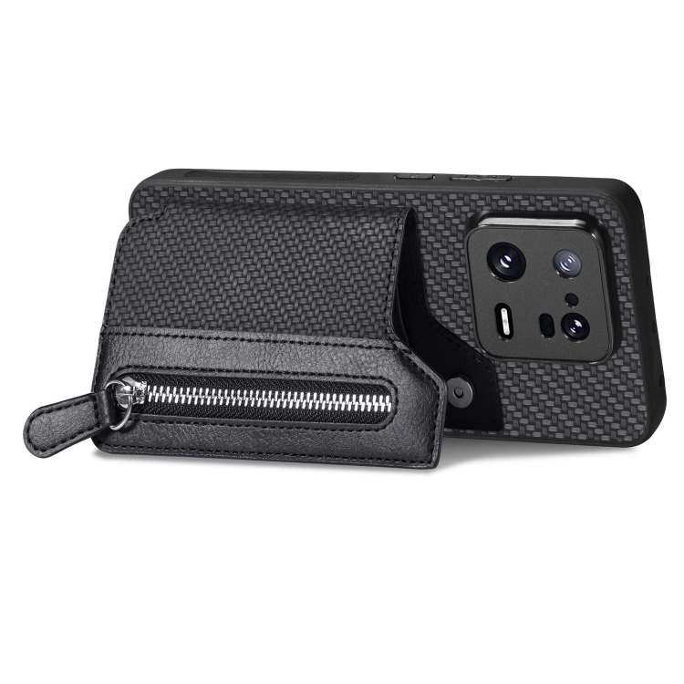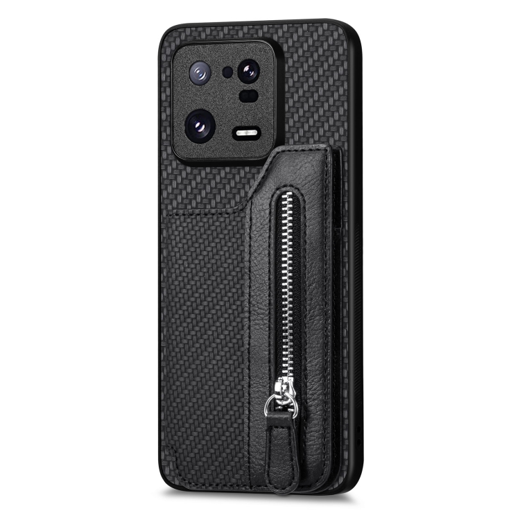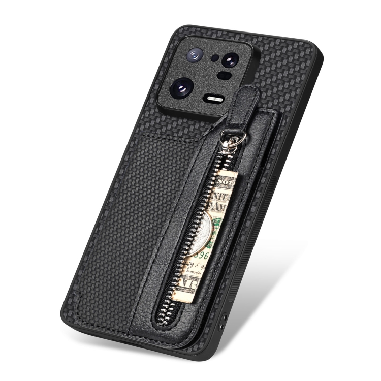Para Xiaomi 13 Pro Carbon Fiber Flip Zipper Wallet Phone Case (Negro)