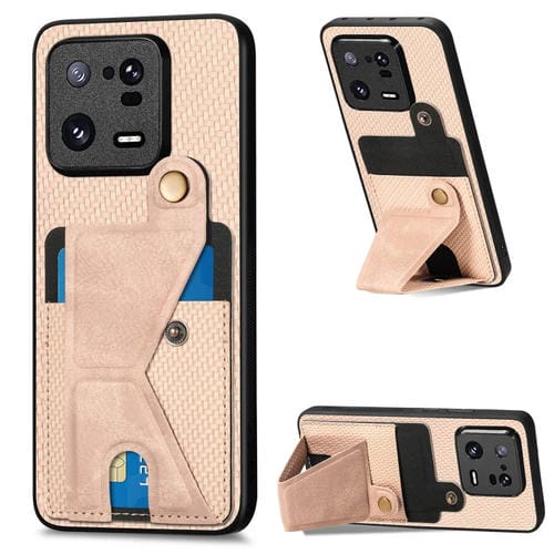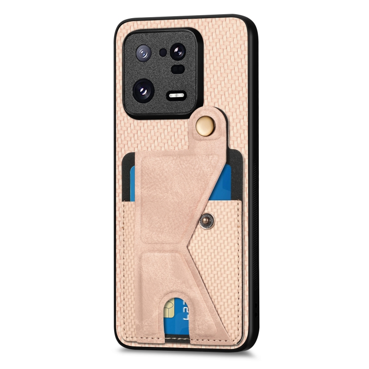 Para Xiaomi 13 Pro Carbon Fiber Wallet Flip Card Holder Phone Case (Khaki)