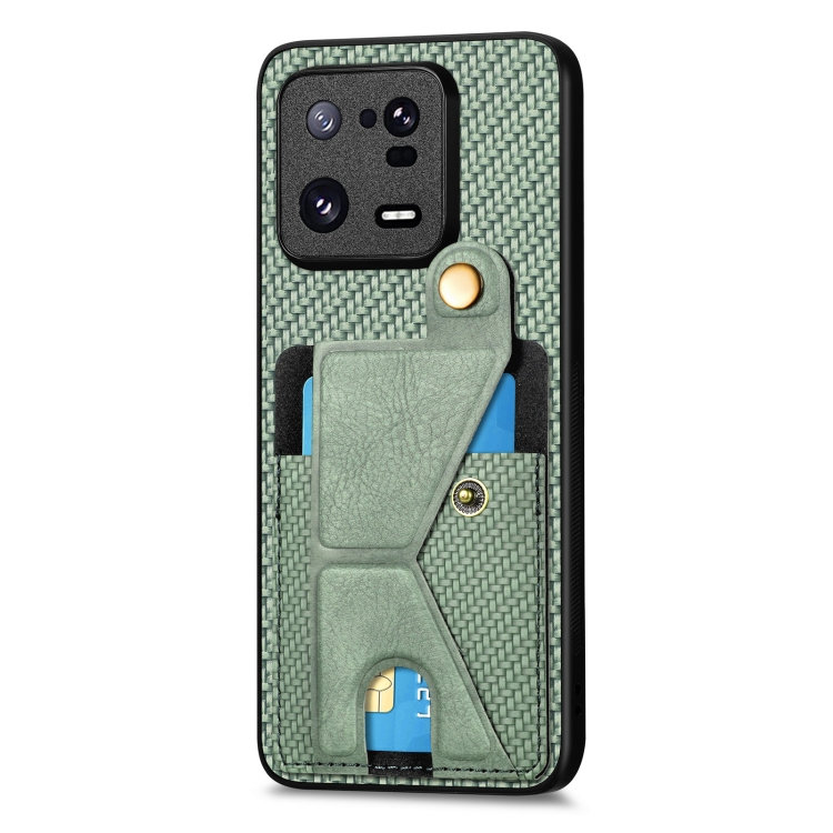 Para Xiaomi 13 Pro Carbon Fiber Wallet Flip Card Holder Phone Case (Verde)