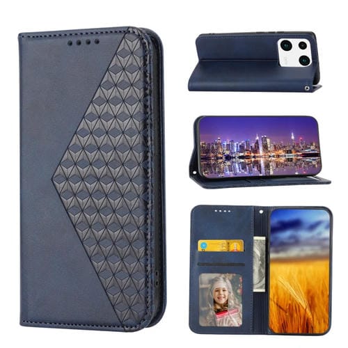 Para Xiaomi 13 Pro Cubic Grid Becerro Textura Magnética Funda de Cuero para Teléfono (Azul)