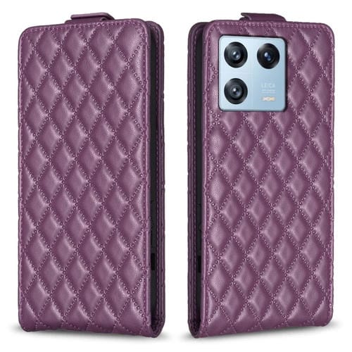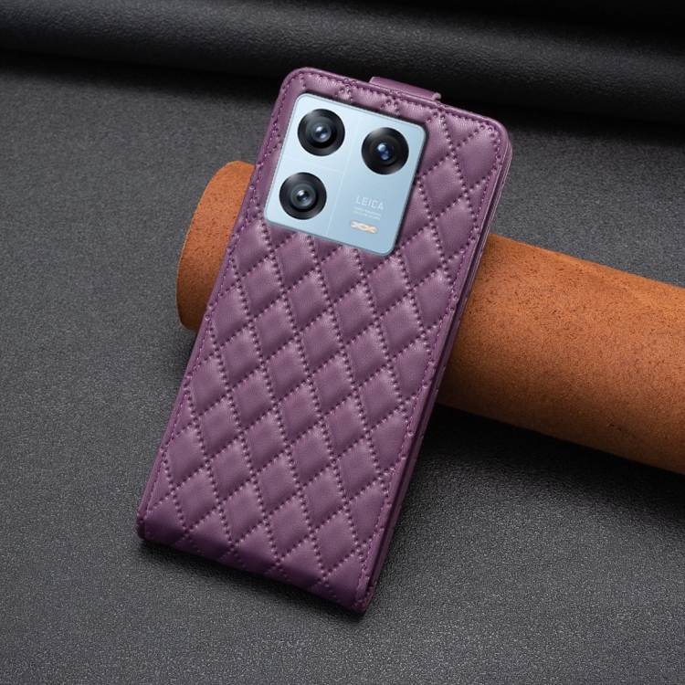Para Xiaomi 13 Pro Diamond Lattice Funda de Cuero con Tapa Vertical para Teléfono (Púrpura Oscuro)