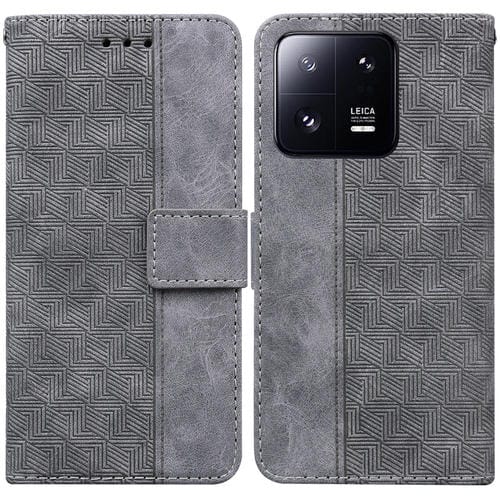 Para Xiaomi 13 Pro Estuche de Teléfono de Cuero con Relieve Geométrico (Gris)