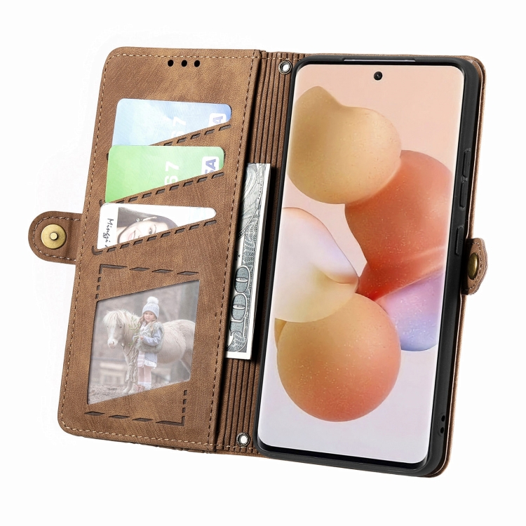 Para Xiaomi 13 Pro Estuche para Teléfono de Cuero con Hebilla Lateral con Cremallera Geométrica (Marrón)