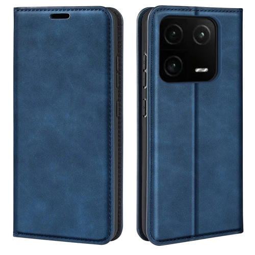 Para Xiaomi 13 Pro Estuche para Teléfono de Cuero con Succión Magnética de Piel Retro (Azul Oscuro)