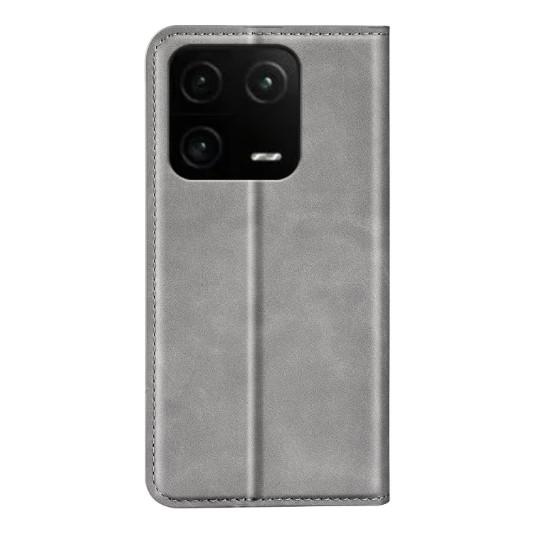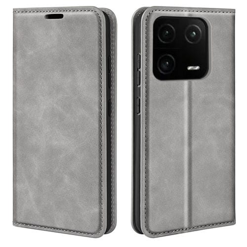 Para Xiaomi 13 Pro Estuche para Teléfono de Cuero con Succión Magnética de Piel Retro (Gris)