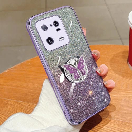 Para Xiaomi 13 Pro Estuche para Teléfono de TPU con Soporte de Mariposa con Brillo Degradado Plateado (Púrpura)