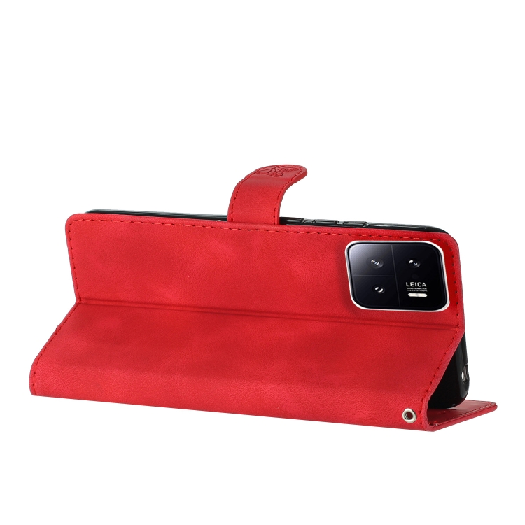 Para Xiaomi 13 Pro Flor Mariposa Relieve Patrón Funda de Cuero para Teléfono (Rojo)