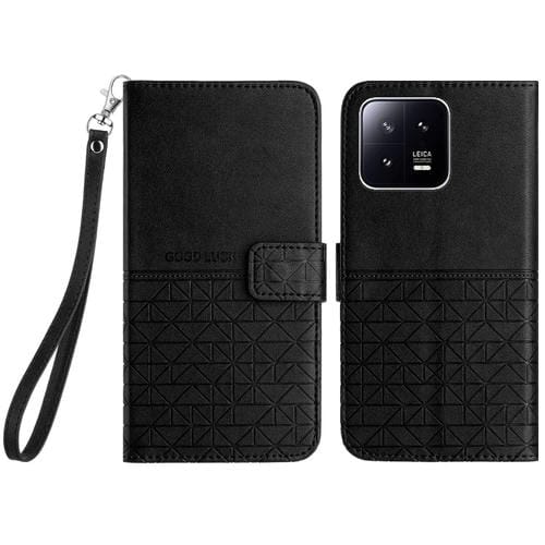 Para Xiaomi 13 Pro Funda de Cuero con Textura Rómbica y Cordón (Negro)