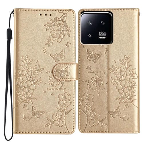Para Xiaomi 13 Pro Funda de Cuero para Teléfono con Mariposas y Flores (Dorado)