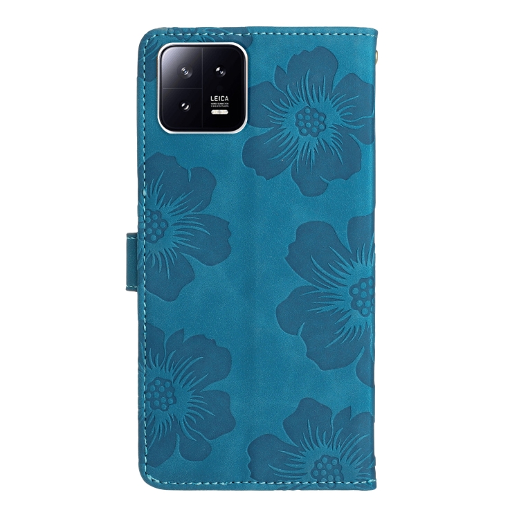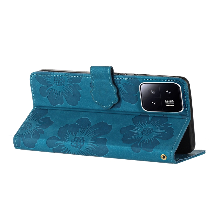 Para Xiaomi 13 Pro Funda de Teléfono de Cuero con Estampado de Flores En Relieve (Azul)
