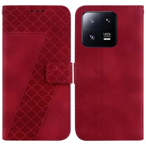 Para Xiaomi 13 Pro Funda de Teléfono de Cuero En Relieve En Forma de 7 (Rojo)