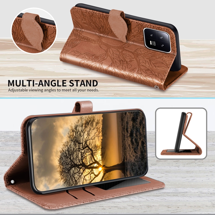 Para Xiaomi 13 Pro Life Tree Relieve Patrón Funda de Cuero para Teléfono (Marrón)