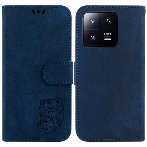 Para Xiaomi 13 Pro Little Tiger Funda de Cuero En Relieve para Teléfono (Azul Oscuro)