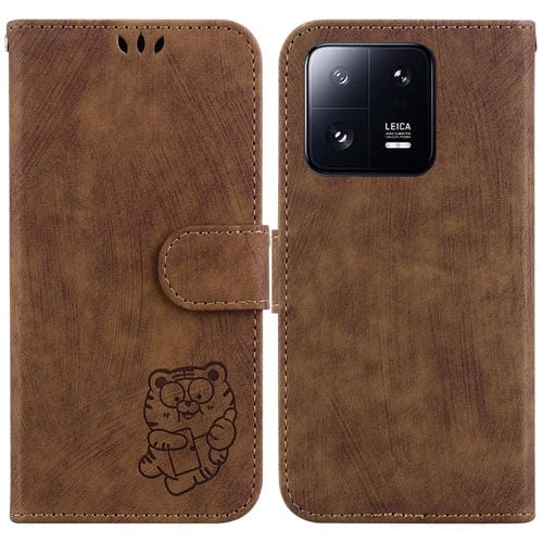 Para Xiaomi 13 Pro Little Tiger Funda de Cuero En Relieve para Teléfono (Marrón)