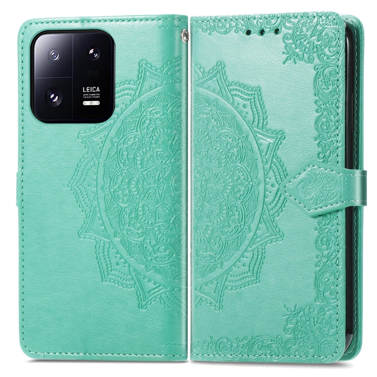 Para Xiaomi 13 Pro Mandala Flower Estuche para Teléfono de Cuero En Relieve (Verde)