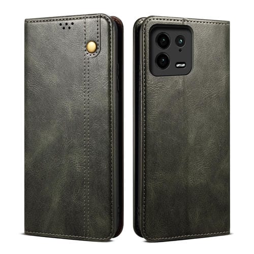 Para Xiaomi 13 Pro Oil Wax Crazy Horse Texture Funda de Cuero para Teléfono (Verde)