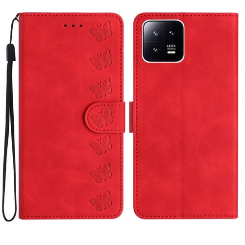 Para Xiaomi 13 Pro Seven Butterflies Caja de Teléfono de Cuero En Relieve (Rojo)