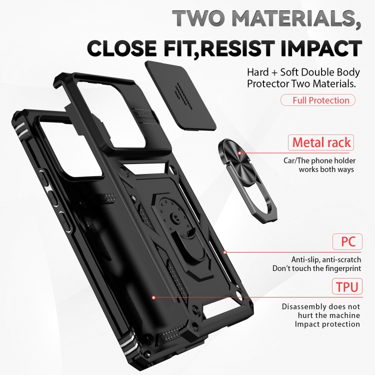 Para Xiaomi 13 Pro Sliding Camshield Holder Phone Case (Negro)