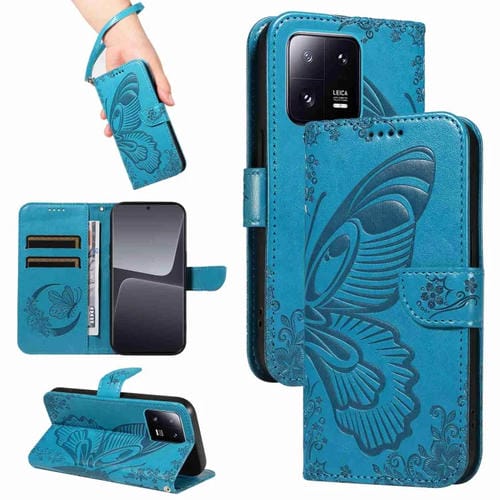 Para Xiaomi 13 Pro Swallowtail Butterfly Funda de Teléfono de Cuero En Relieve (Azul)