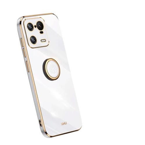Para Xiaomi 13 Pro Xinli Straight Edge 6D Electroplate TPU Funda para Teléfono con Soporte para Anillo (Blanco)