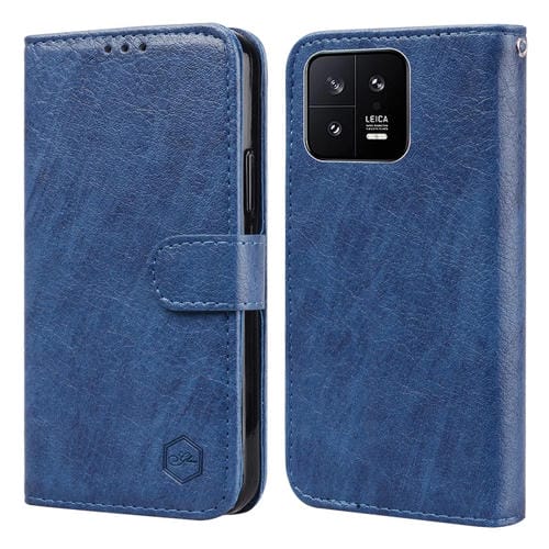 Para Xiaomi 13 Sensación de Piel Aceite Textura de Cuero Pu + TPU Funda para Teléfono (Azul Oscuro)