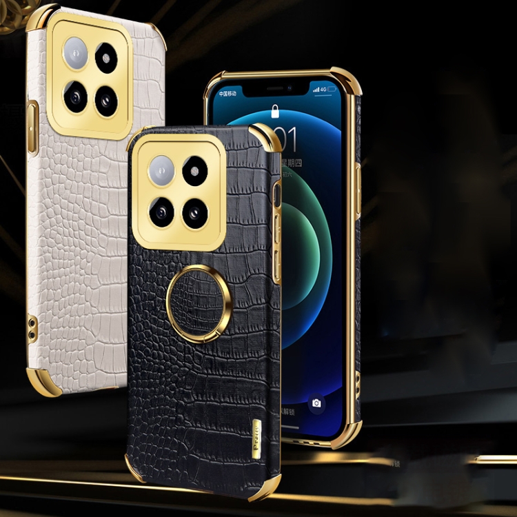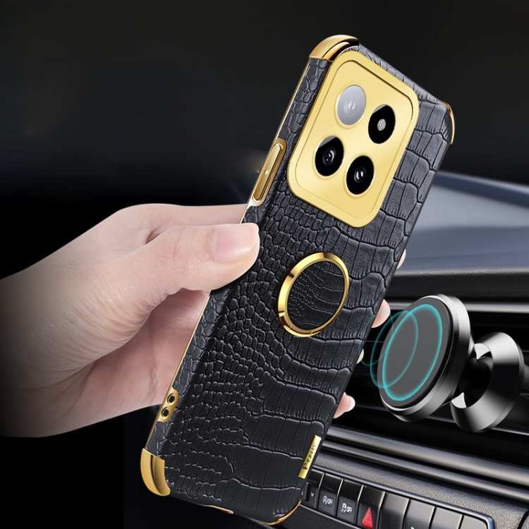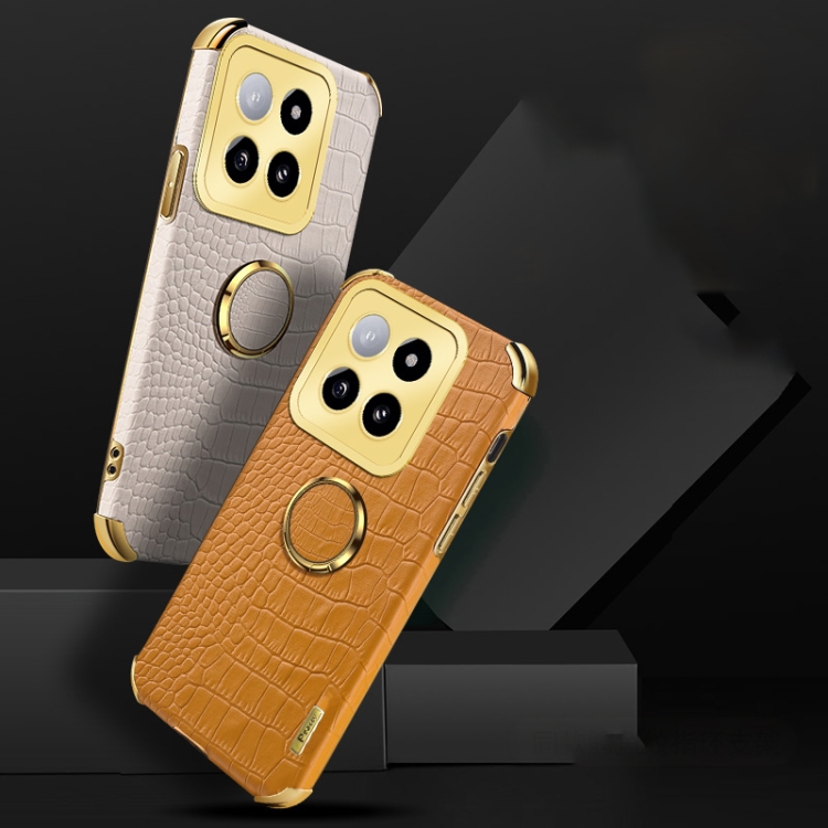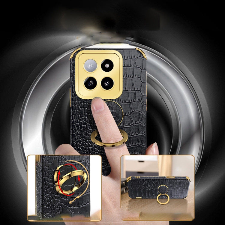 Para Xiaomi 14 6D Funda Trasera De Cuero Con Textura De Cocodrilo Galvanizada Y Soporte (Verde)