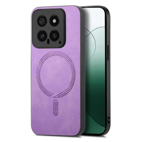Para Xiaomi 14 Color Sólido Retro Magsafe Pu Funda Para Teléfono Con Contraportada (Púrpura)