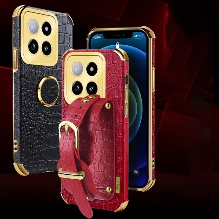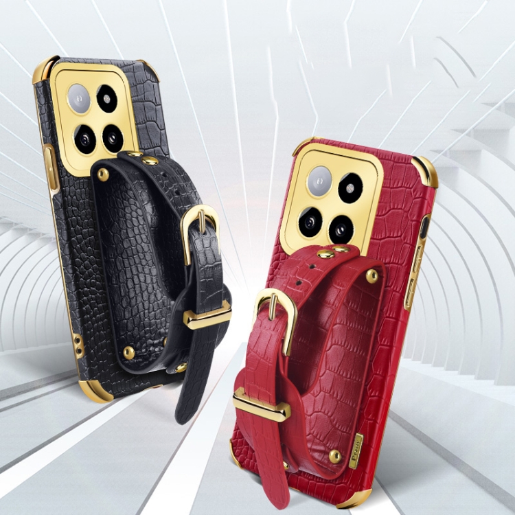 Para Xiaomi 14 Correa De Muñeca Electrochapada Funda Trasera De Cuero De Cocodrilo (Verde)