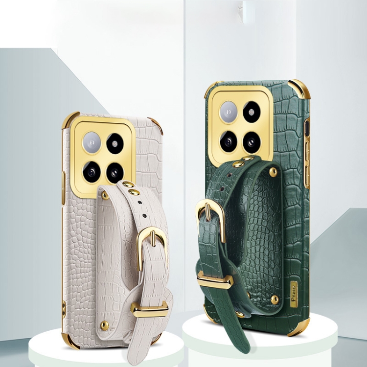 Para Xiaomi 14 Correa De Muñeca Galvanizada Funda Trasera De Cuero De Cocodrilo (Rojo)
