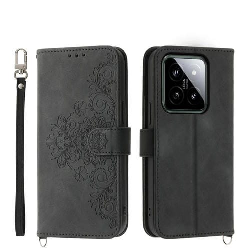 Para Xiaomi 14 Funda De Cuero Para Teléfono Con Billetera En Relieve Y Flores Con Sensación De Piel (Negro)