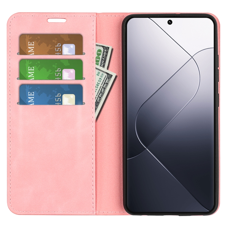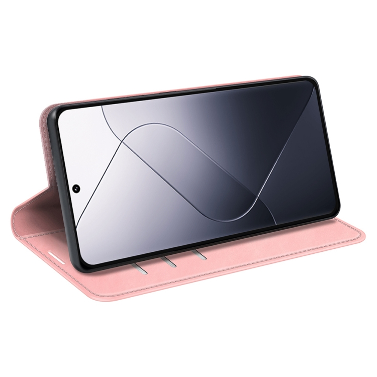 Para Xiaomi 14 Funda De Teléfono De Cuero Con Succión Magnética De Piel Retro (Rosa)