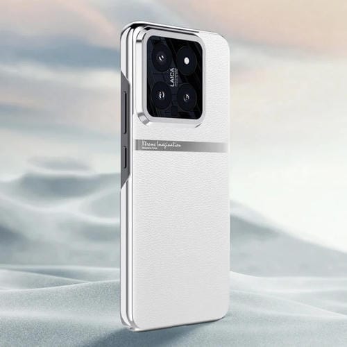 Para Xiaomi 14 Funda Para Teléfono A Prueba De Golpes Con Todo Incluido De Cuero Liso Galvanizado (Blanco)