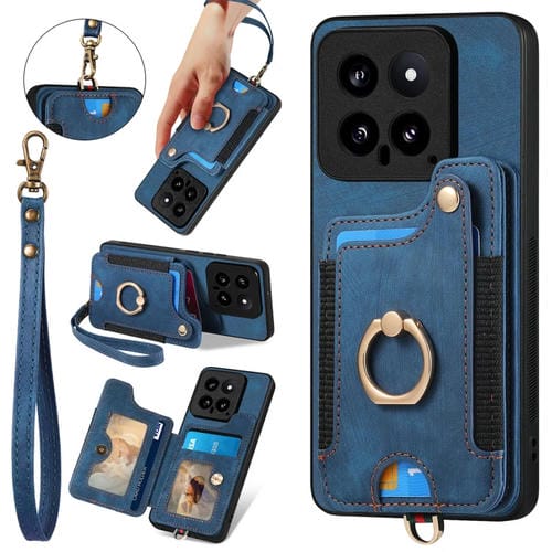 Para Xiaomi 14 Funda Para Teléfono Con Billetera Rfid Con Múltiples Tarjetas Y Anillo Con Sensación De Piel Retro (Azul)