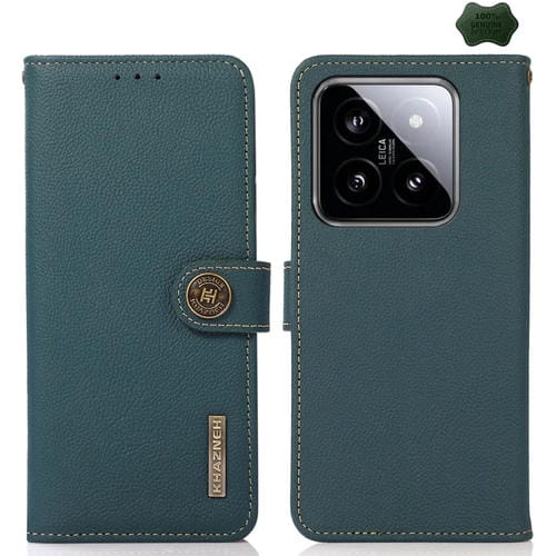 Para Xiaomi 14 Khazneh Custer Texture Rfid Funda De Cuero Genuino Para Teléfono (Verde)