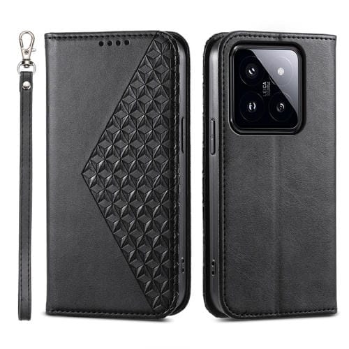 Para Xiaomi 14 Pro Cubic Grid Calf Texture Funda De Teléfono De Cuero Magnético (Negro)