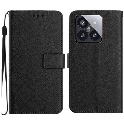 Para Xiaomi 14 Pro Funda De Teléfono De Cuero Con Textura De Rejilla Rómbica (Negro)