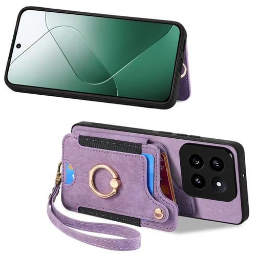 Para Xiaomi 14 Pro Funda Para Teléfono Con Billetera Rfid Con Anillo Con Sensación De Piel Retro (Púrpura)
