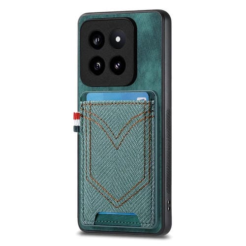 Para Xiaomi 14 Pro Funda Para Teléfono Con Piel De Cuero Con Textura Vaquera Y Ranura Para Tarjeta (Verde)
