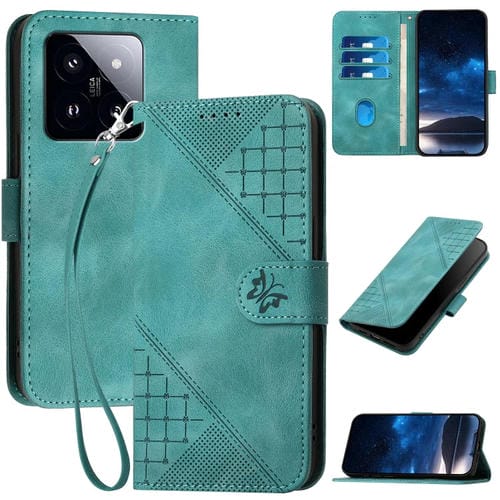 Para Xiaomi 14 Pro Yx0080 Grid Butterfly Patrón En Relieve Funda De Cuero Con Tapa Para Teléfono Con Cordón (Azul Claro)