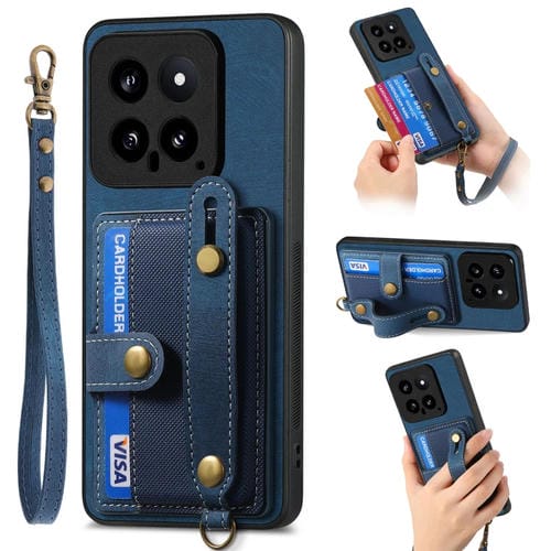 Para Xiaomi 14 Retro Cross Muñequera Monedero Funda Trasera De Cuero Para Teléfono (Azul)