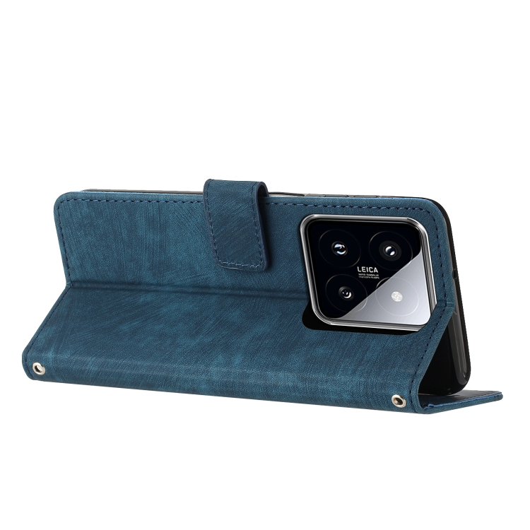 Para Xiaomi 14 Skin Feel Funda De Cuero Con Patrón De Rayas Y Cordón Largo (Azul)