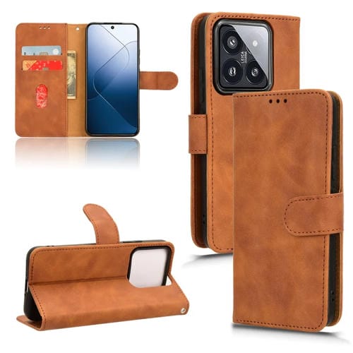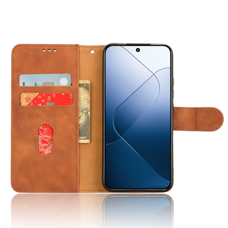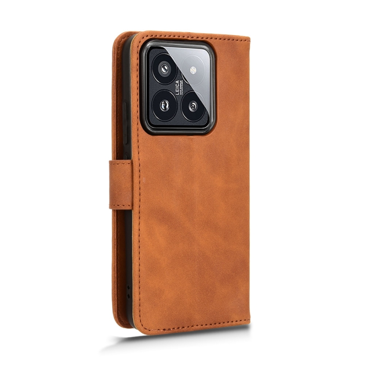 Para Xiaomi 14 Skin Feel Funda De Teléfono De Cuero Con Tapa Magnética (Marrón)