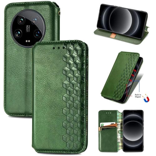 Para Xiaomi 14 Ultra Cubic Grid Funda De Teléfono De Cuero Magnético Prensado (Verde)