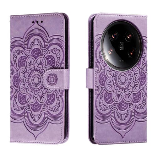 Para Xiaomi 14 Ultra Sun Mandala Funda De Cuero Para Teléfono Con Patrón En Relieve (Púrpura)