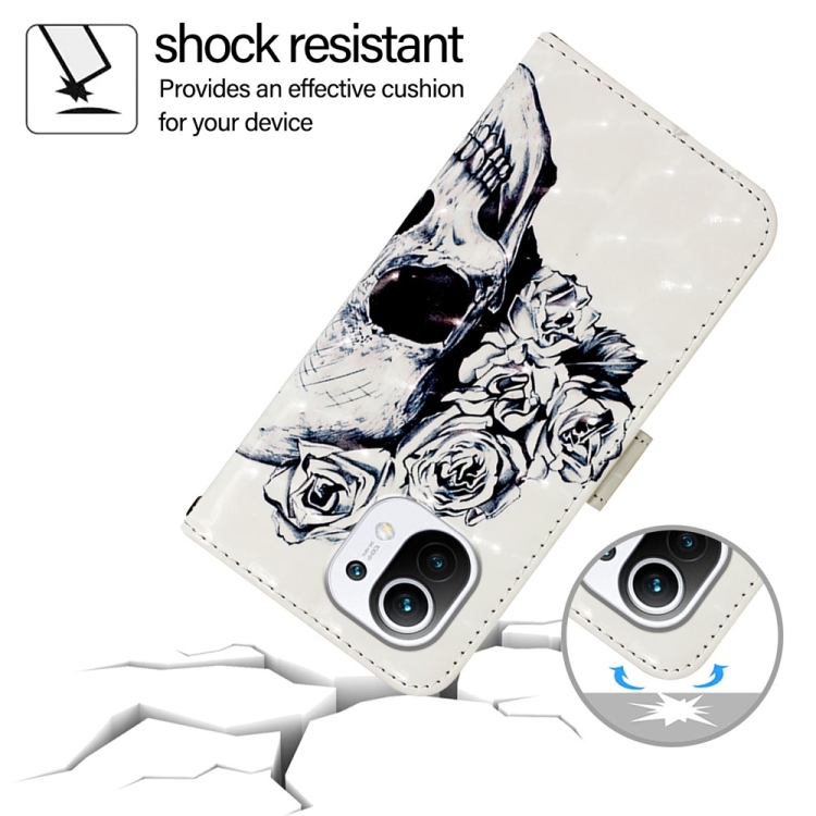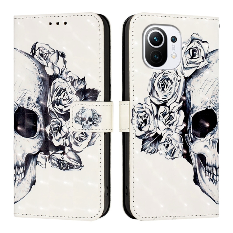Para Xiaomi Mi 11 Funda de Teléfono de Cuero con Tapa Horizontal con Pintura 3D (Calavera)