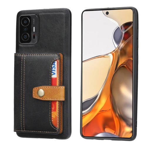 Para Xiaomi Mi 11T / Mi 11T Pro Calfskin Color Aproxible TPU + Funda de Pu a Prueba de Golpes con Soporte y Ranura para Tarjeta (Negro)