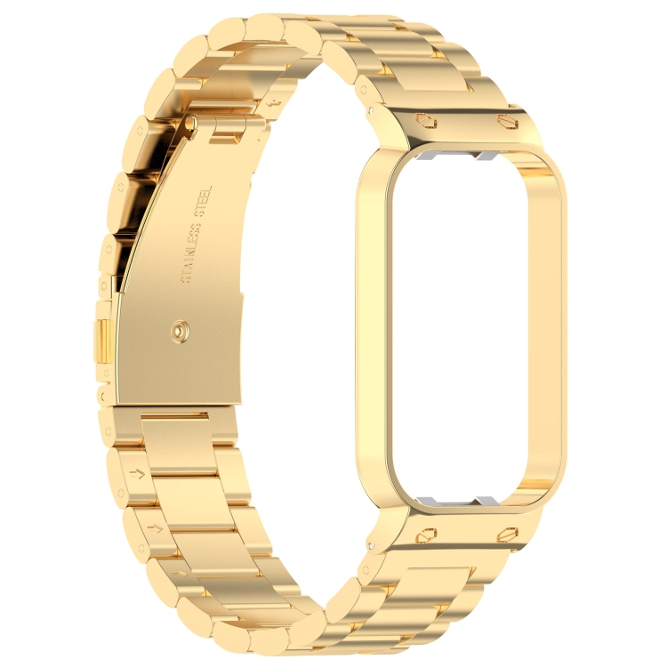 Correa de Reloj Xiaomi Mi Band 8 Active Acero Inoxidable con Tres Cuentas y Marco de Metal (Dorado)