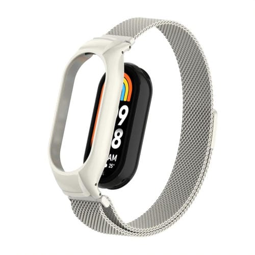 Caja de Metal Integrada para Xiaomi Mi Band 8 + Banda Magnética Milanesa (Beige)