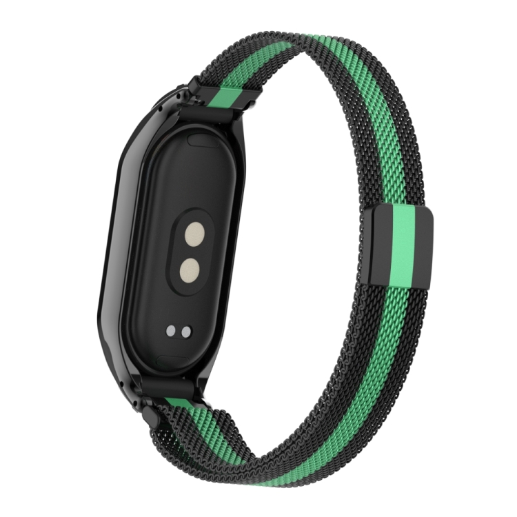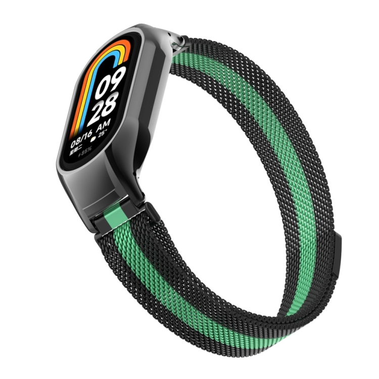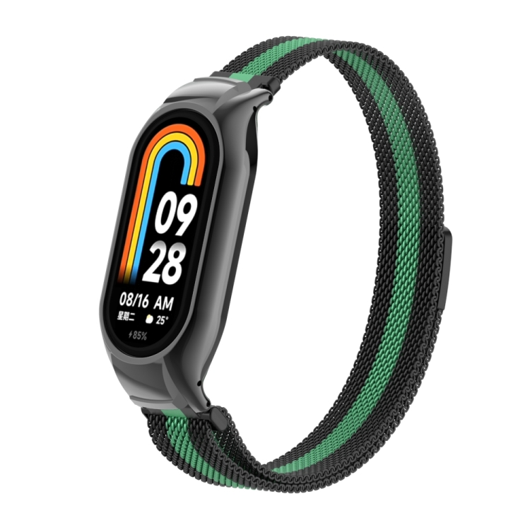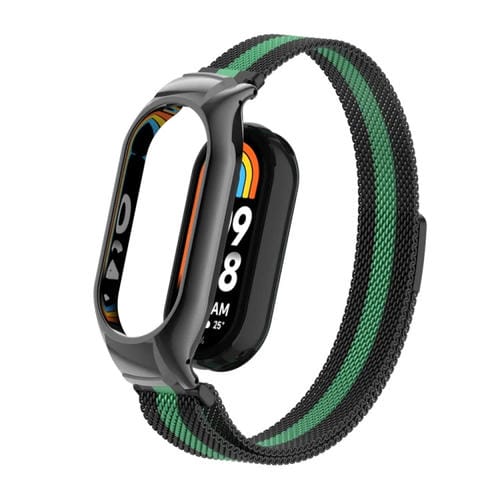 Caja de Metal Integrada para Xiaomi Mi Band 8 + Banda Magnética Milanesa (Negro y Mar Azul)